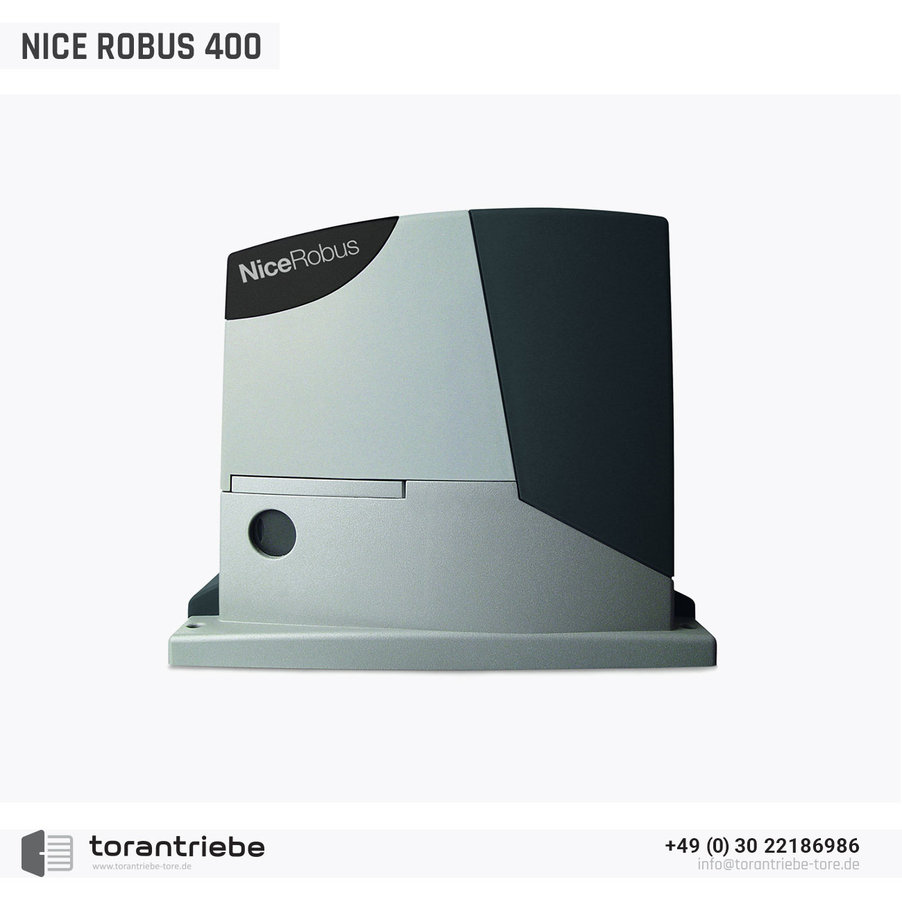 Kit de motorisation NICE ROBUS 400 pour des portails coulissants de maisons individuelles. La motorisation est moderne, fabrique avec des matériaux de plus haute qualité. RB400 a une armoire de commande intégrée sous le capot résistant. C’est une solution 24V pour des portails de 8 mètres de long et 400 kg.
